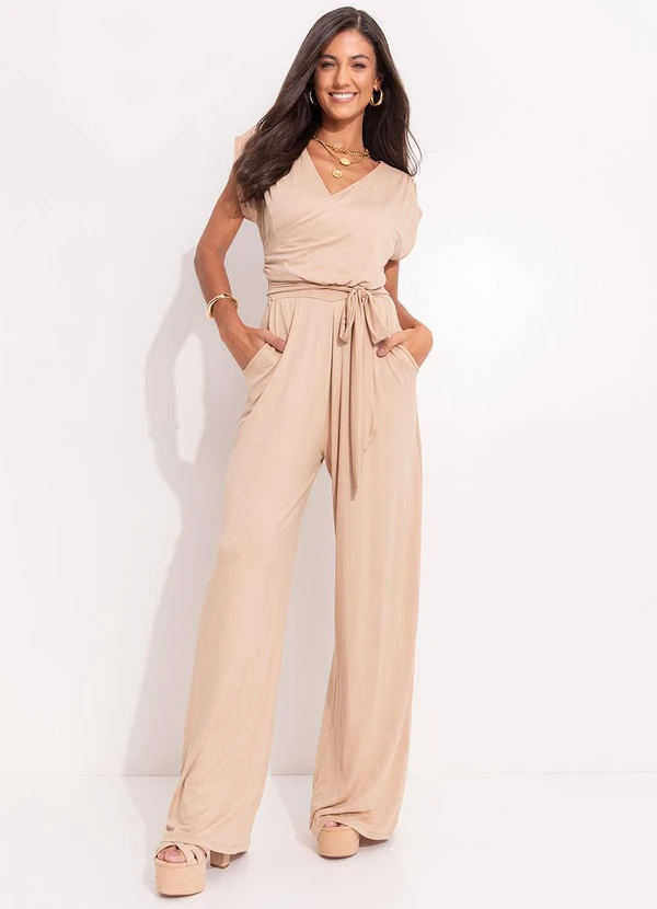 Quintess - Macacão Areia em Malha de Viscose