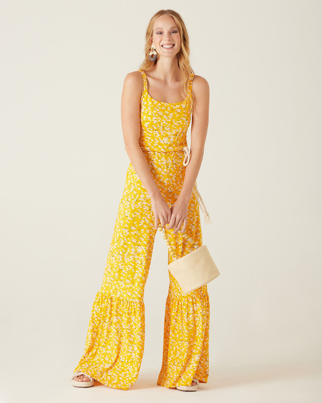 Macacão Floral Viscose Stretch Conforto Malwee Amarelo