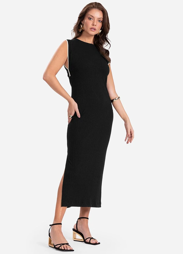 Endless - Vestido Midi em Viscose Creponada Endless Preto