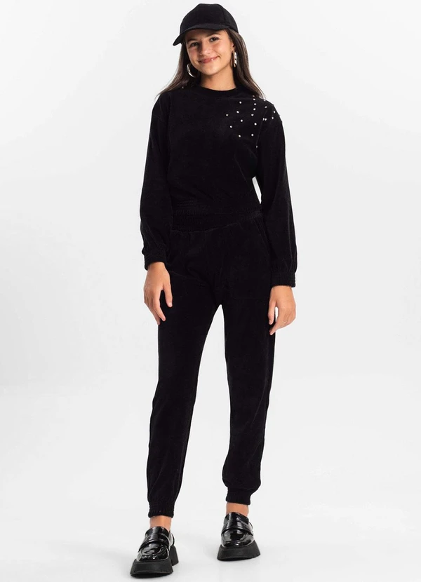 Minty - Conjunto Juvenil Feminino Blusão com Calça Preto