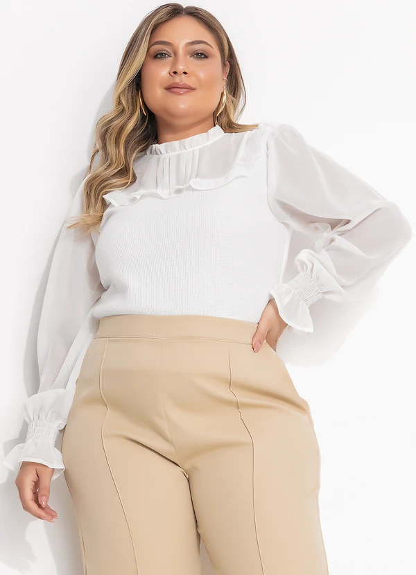 Quintess - Blusa Off White em Chiffon