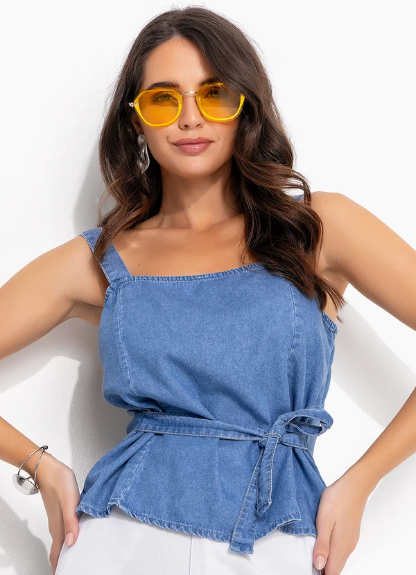 Quintess - Blusa Jeans Claro em Jeans Leve