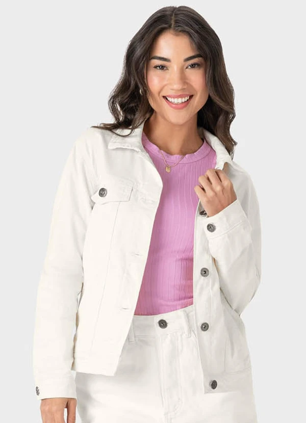 Malwee - Jaqueta Off White Tradicional Feminina em Sarja