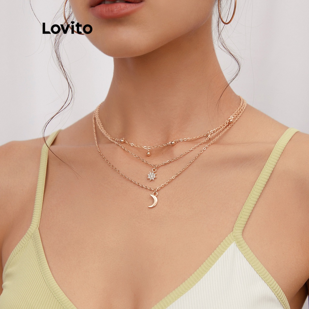 Lovito Colar Casual com Camadas em Camadas L004006 (Ouro)