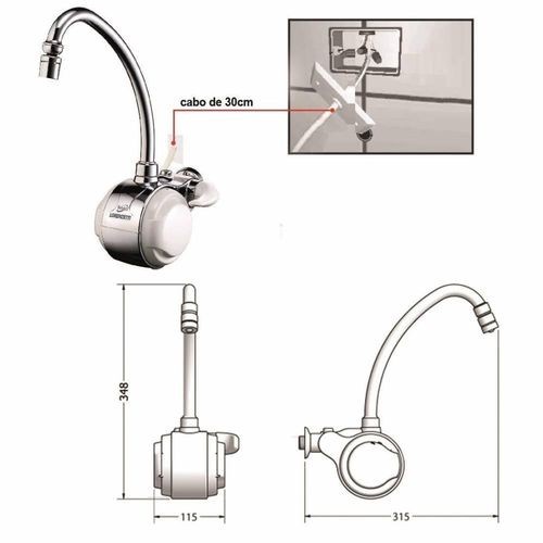 Torneira Elétrica Versátil De Parede Branca Cromada 127V 4500W Lorenzetti Bica Móvel Prática 3 Temperaturas Cozinha
