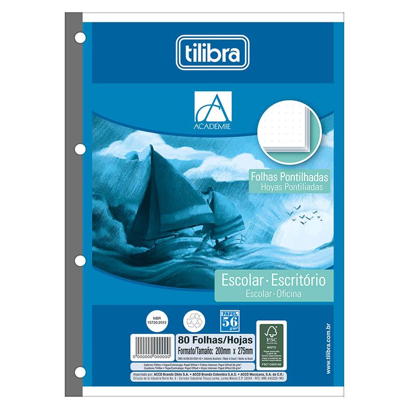 Bloco para fichário universitário Académie Pontilhado 4 furos 80 fls Tilibra