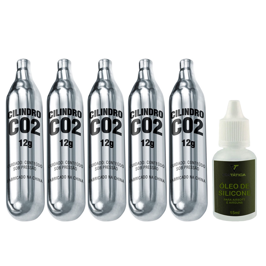Kit 5 Cilindros Gás Co2 12g + Óleo de Silicone