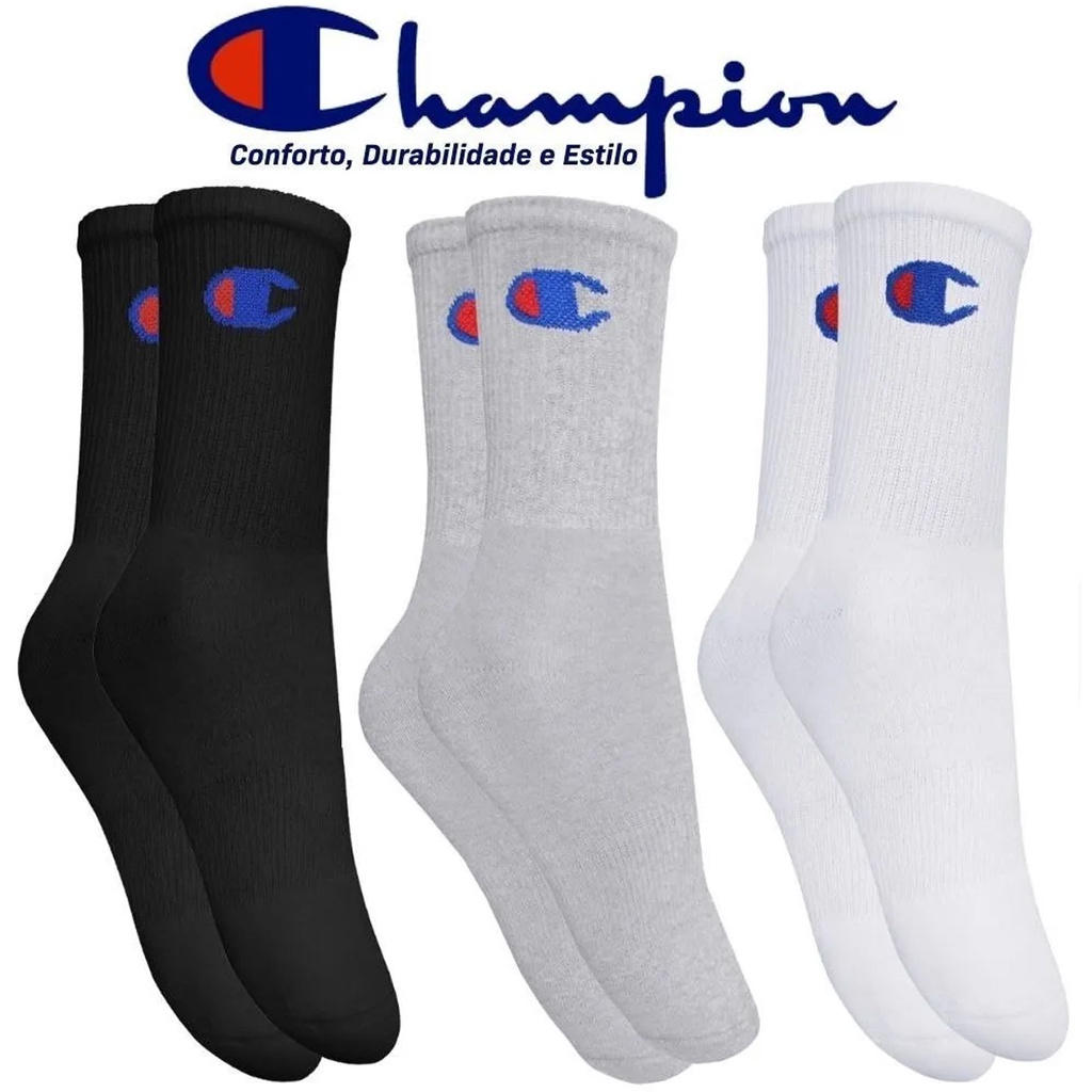 Kit com 3 Meias Algodão Cano Longo Adulto Atoalhada Champion