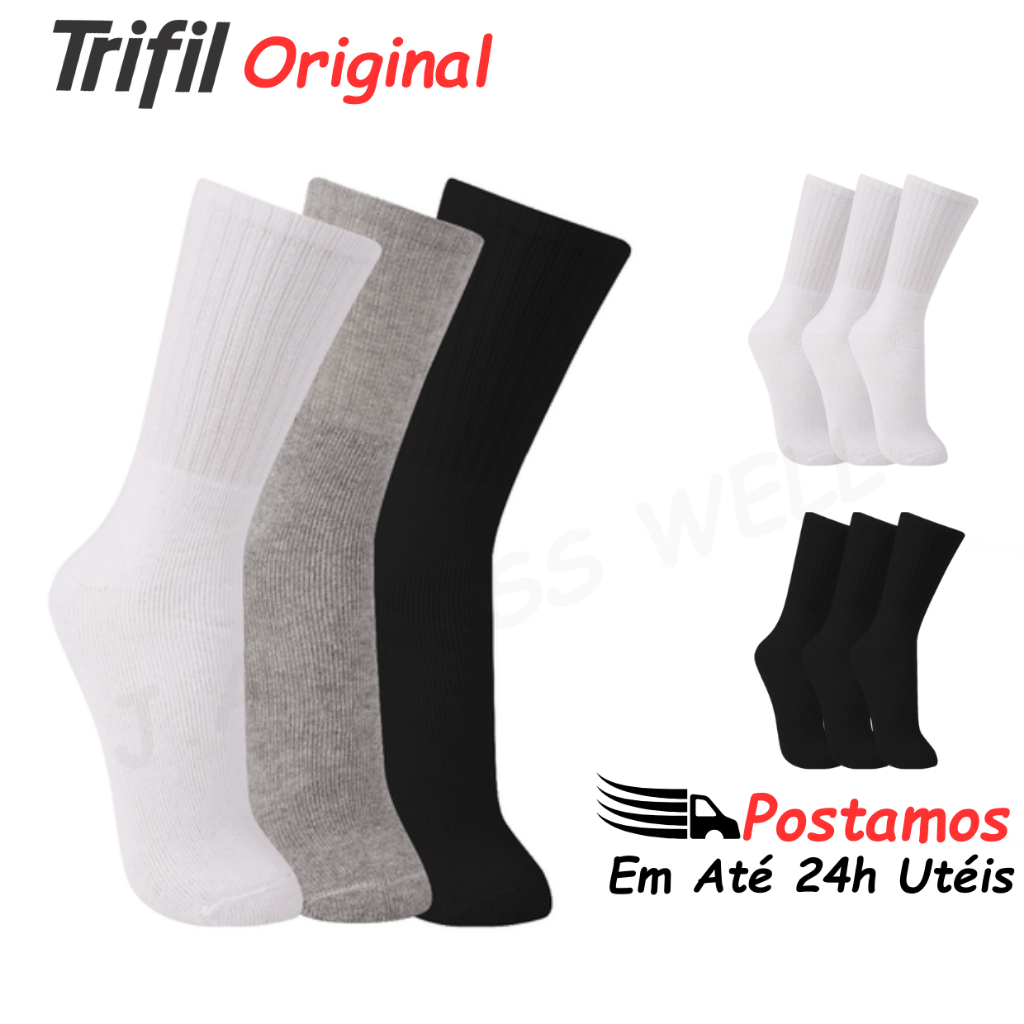 Kit Com 3 Pares Meia Cano Longo Trifil Esportiva Atoalhada T0 6313