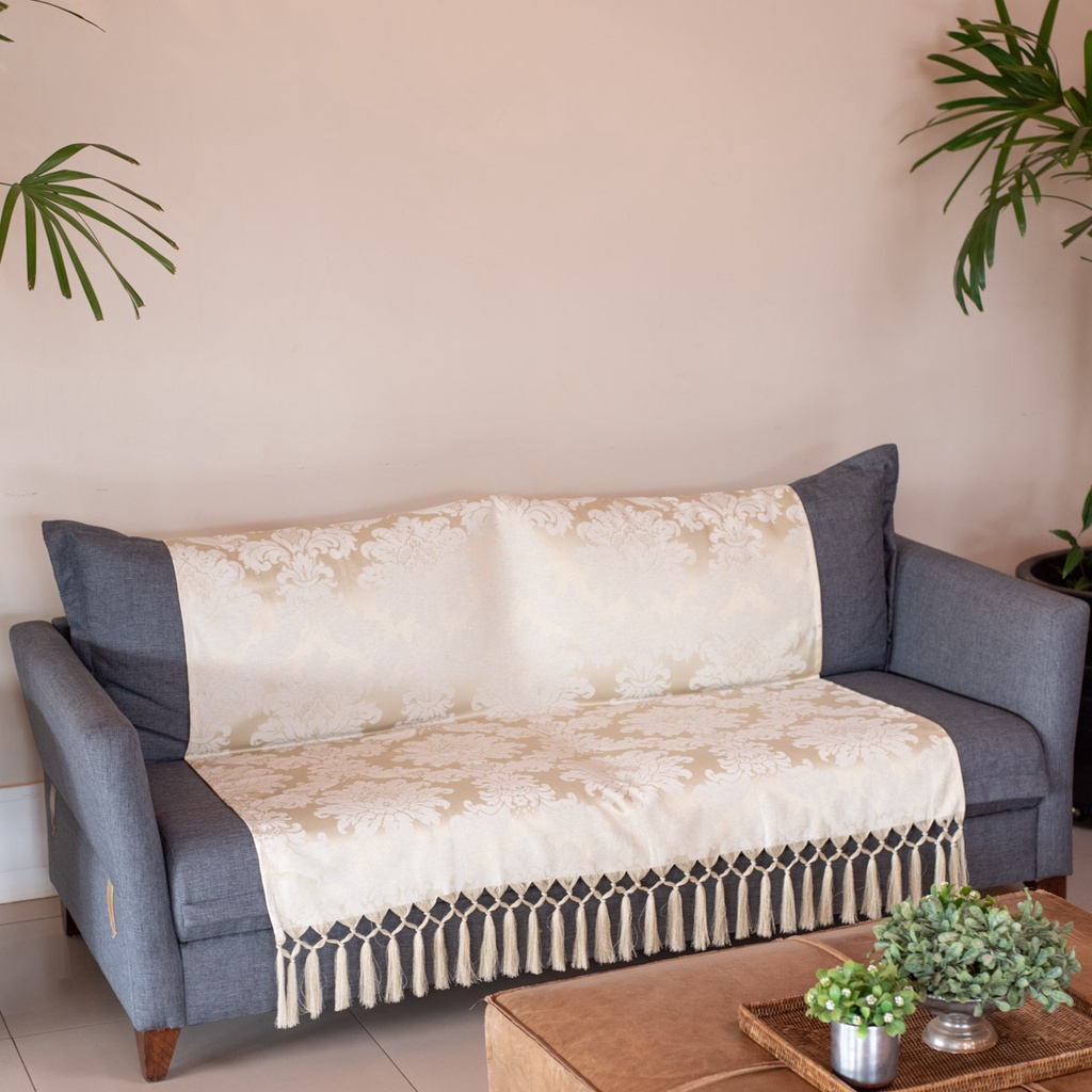 Manta Para Sofá 3,50 X 2,80 Gigante Medalhão Bege Decoração Sala