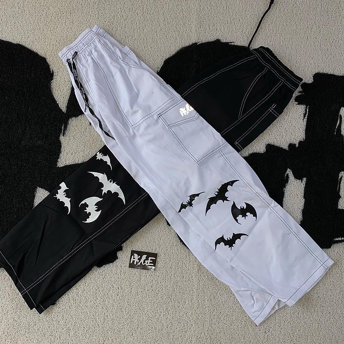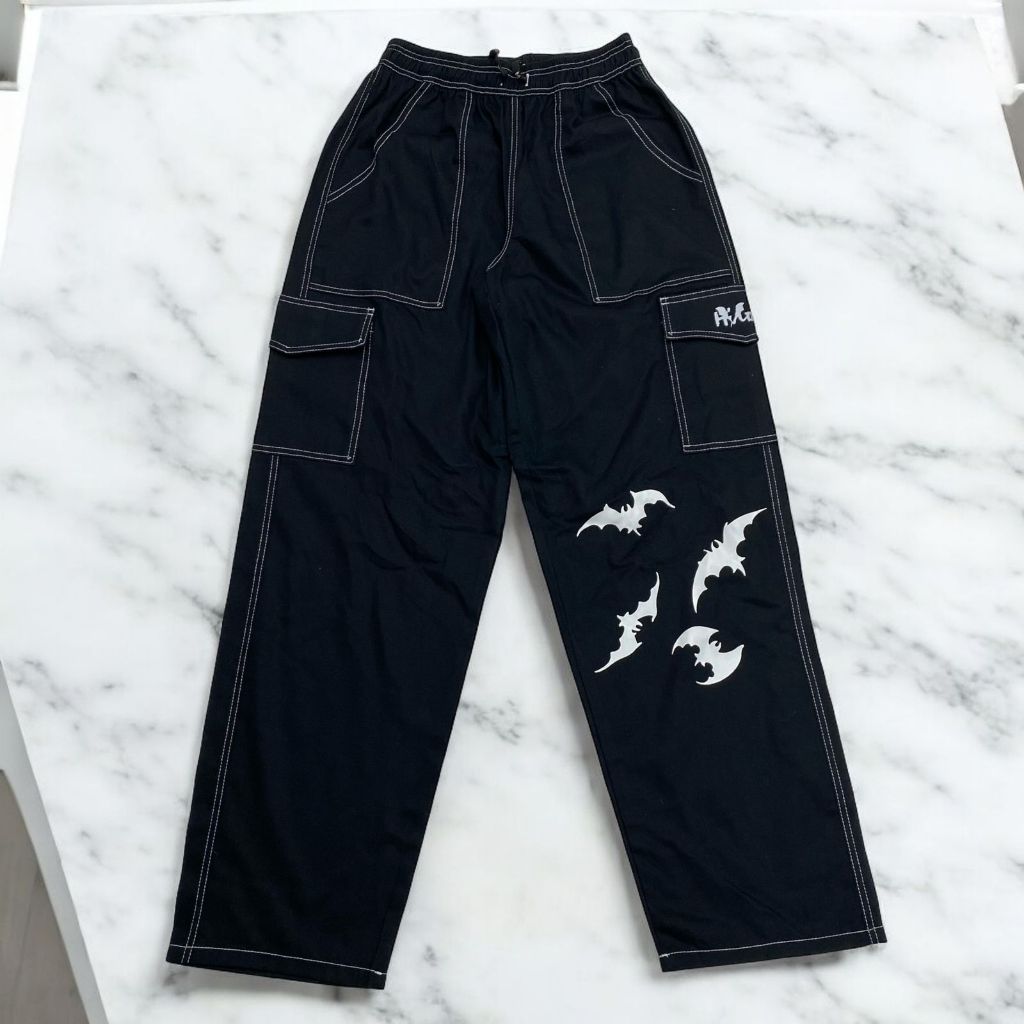 Calça Cargo Com Listras Huge Bat - Streetwear - Sarja - Logo Refletivo