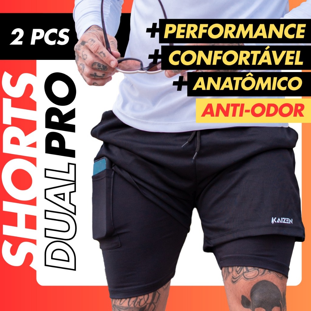 Kit 2 Bermudas Masculinas 2 em 1 com Suporte para Celular para atividades físicas e esportivas com forro duplo