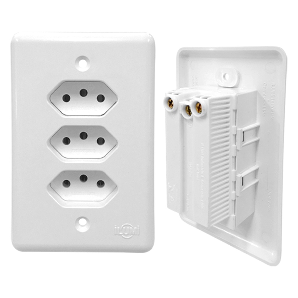 Tomada Monobloco Tripla 10a Ilumi (fácil Instalação) 201201