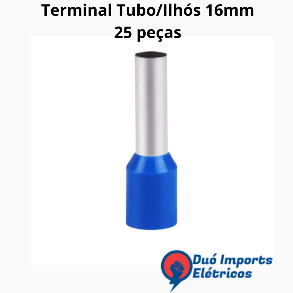Terminal Elétrico Tubo/Ilhos 16mm - 25 peças