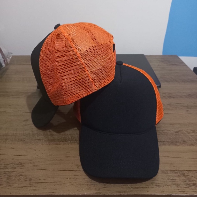 Boné Preto com Laranja Liso Trucker Masculino Feminino com Tela Aba curva