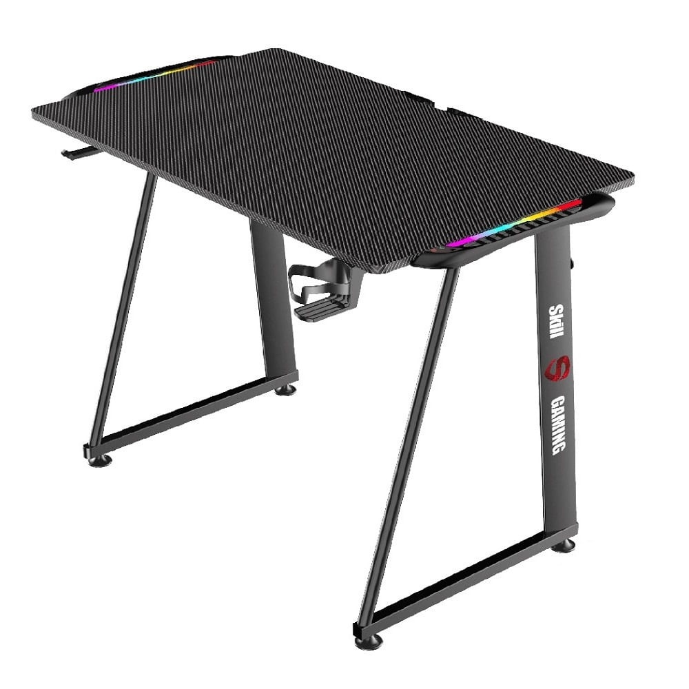 Mesa Gamer Led RGB, Em Aço Carbono, Suporte Para Headset e Copo, Com Organizador De Cabos - Skill Skd-001m