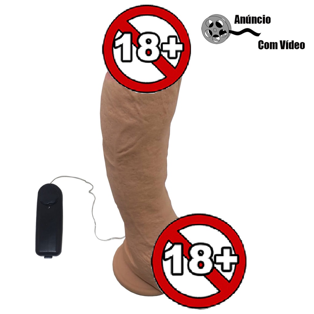 Pênis De Borracha Grosso 21cm x 4,0cm Com Escroto Ventosa E Vibrador