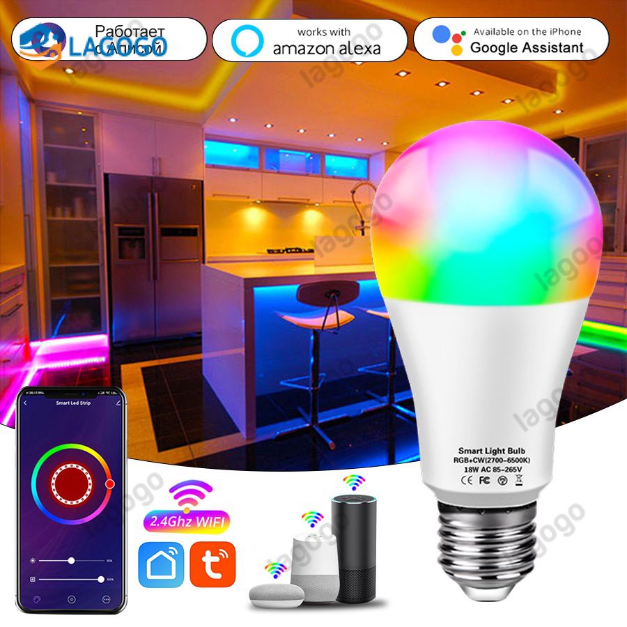 E27 Tuya WiFi Smart Bulb 18W 15W 12W Lâmpadas LED RGB Regulável Controle De Voz Com Alexa Inicial Do Google 85-265V Vida Inteligente APP
