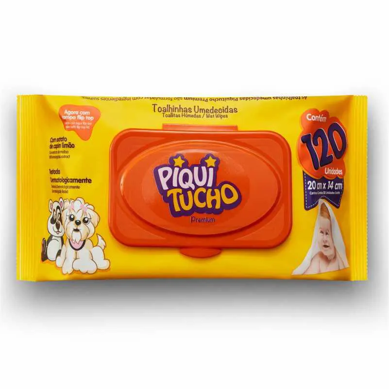 Lenço Umedecido Piquitucho Premium Extrato de Capim Limão 120 Unidades