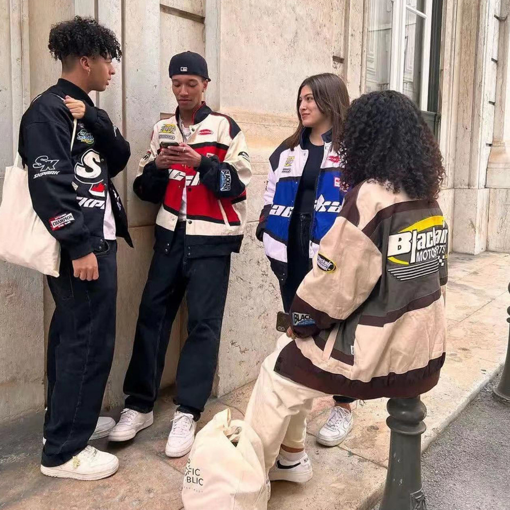 2023Novo Retro De Corrida Para Homens High Street Motorcycle Tactical Militar Primavera Novas Mulheres Jaqueta De Beisebol De Correspondência De Cores