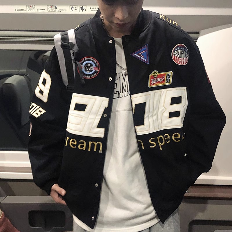 High-end Design Design Baseball Uniformes Americanos Hip-Hop ins Style Racing Jacket Loose Motorcycle Uniformes Homens Mulheres Podem Usar Equipamento de Cavaleiro Estilo Casaco à prova de vento Casaco Americano Retro Racing Jacket Jacket Bordado