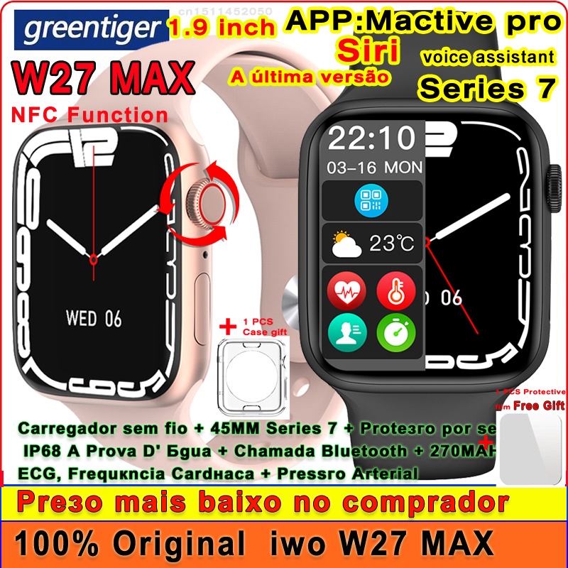 Relógio Smart iwo W27 MAX Original 1.9 Polegadas 45MM Siri Series 7