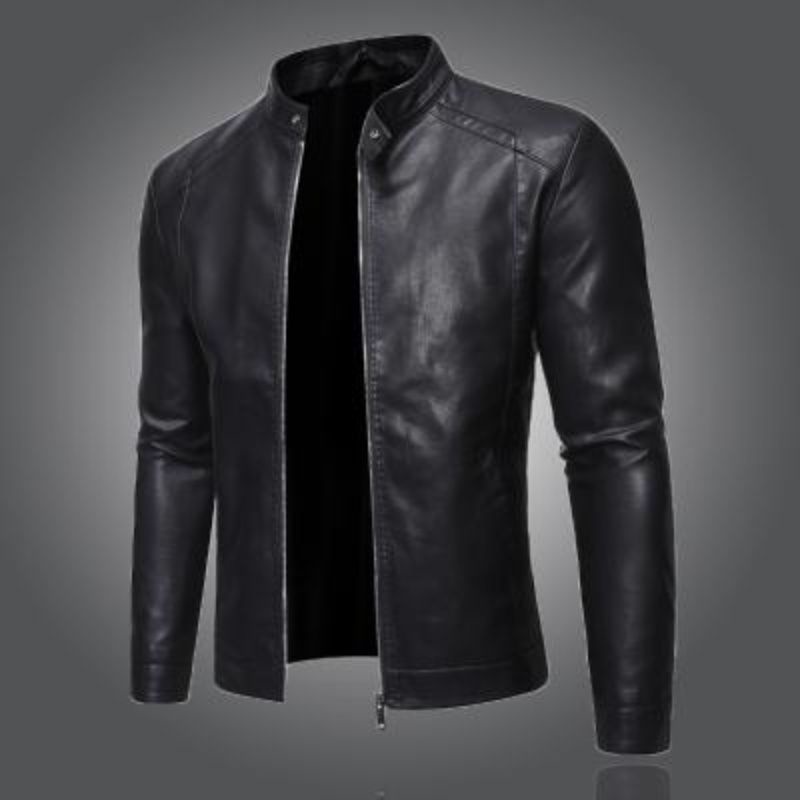 Coleira De Pé Motocicleta Cor Sólida Casaco De Couro Slim Fit Mola E Homens De Outono