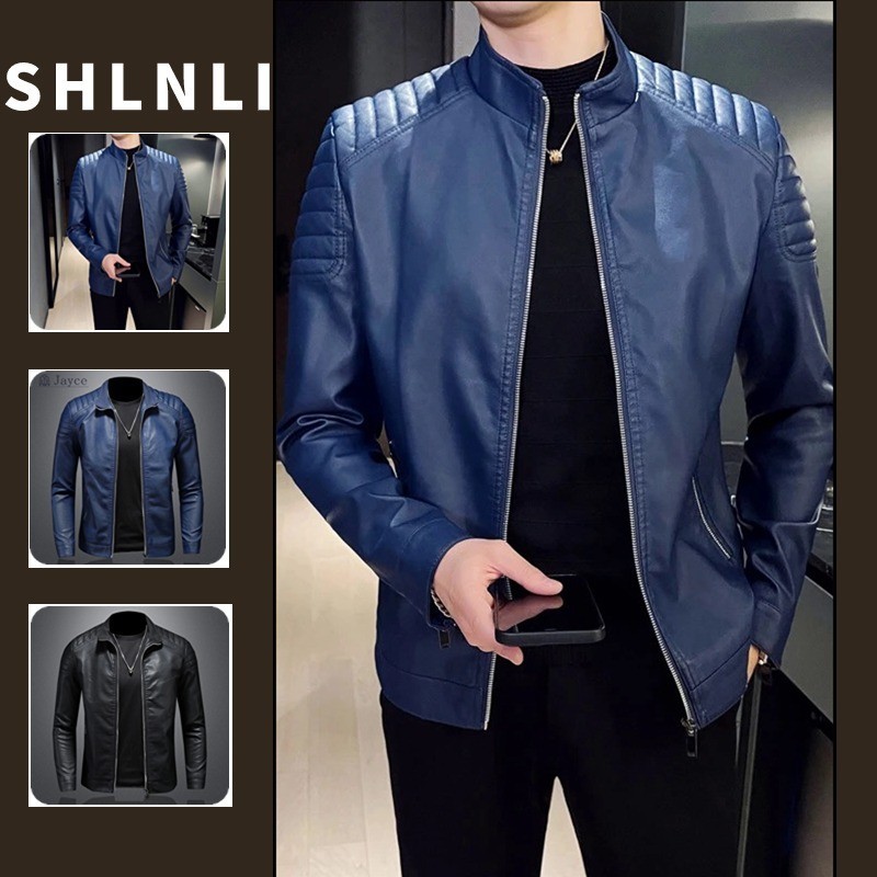 Jaqueta de couro slim fit masculina/jaqueta com zíper para motocicleta/casaco casual para primavera/outono/inverno