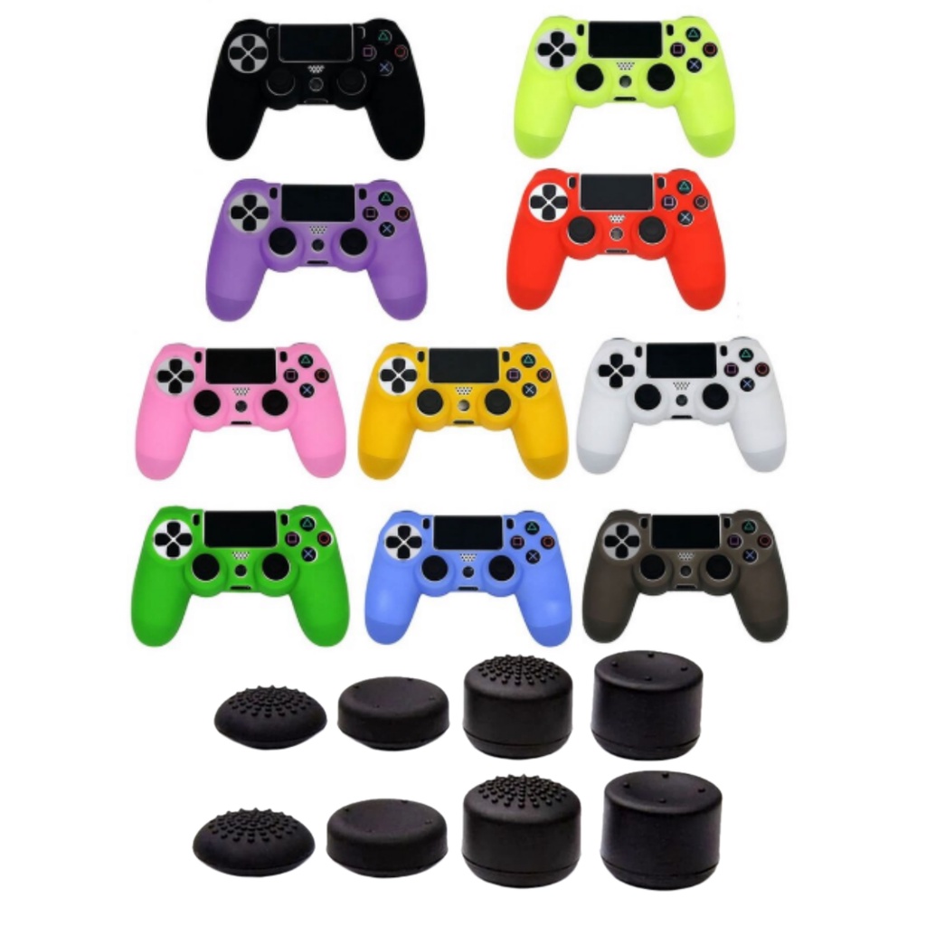 CAPA DE SILICONE LISA + KIT 08 GRIPS - CONTROLE PS4