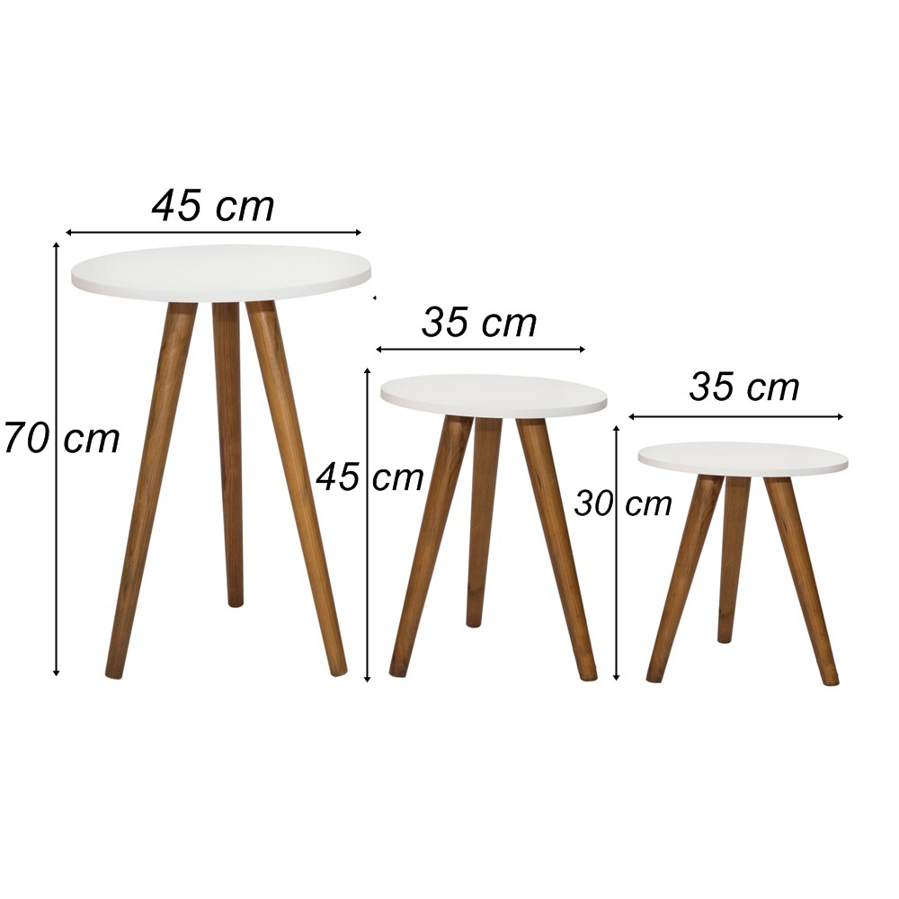 Kit Conjunto Trio de Mesas Mesinhas de Canto para Sala Sofá Redonda com Pés Palito Retrô Decoração