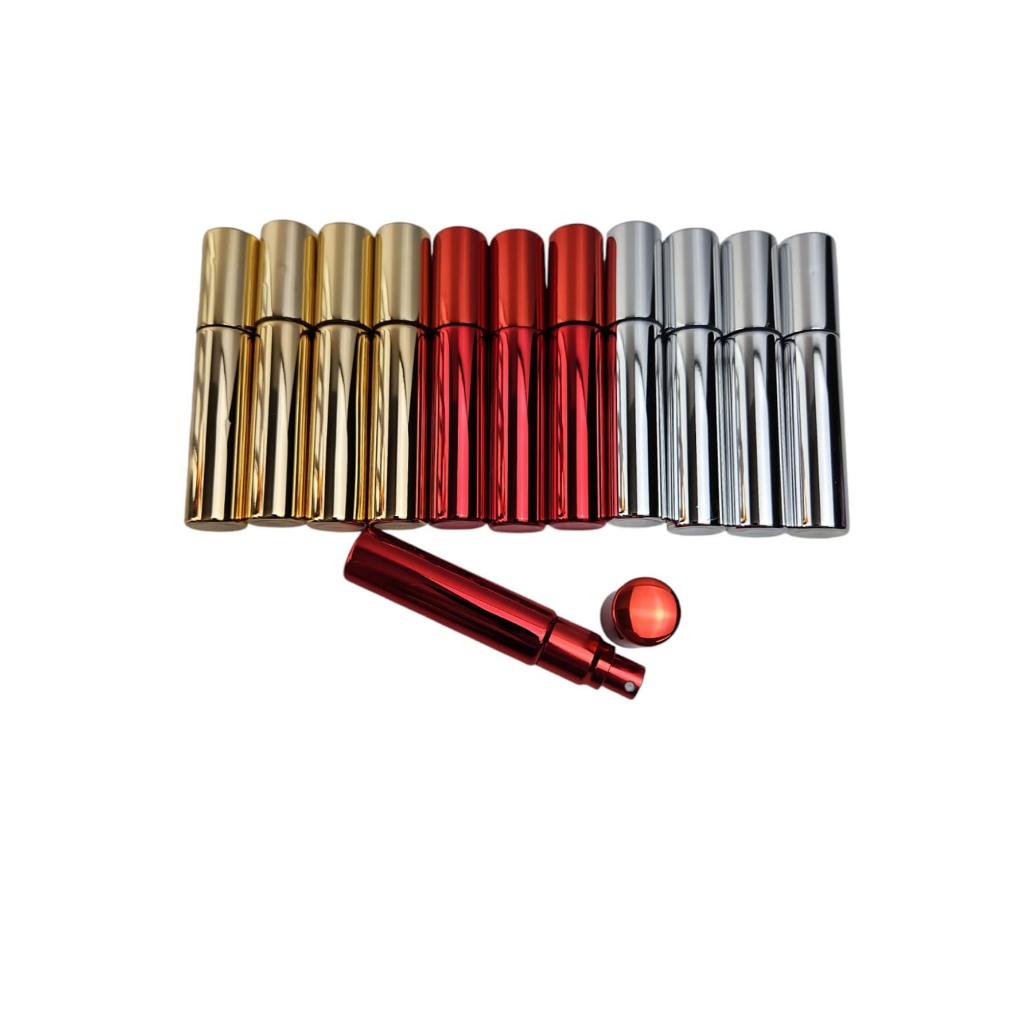 Kit Com 12 Porta Perfume De Bolsa Spray Luxo 5ML 10ML E 15ml Vermelho Dourado e Prata