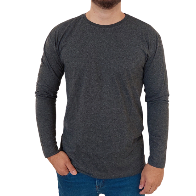 Camiseta Masculina Manga Longa 100% Algodão Básica Lisa
