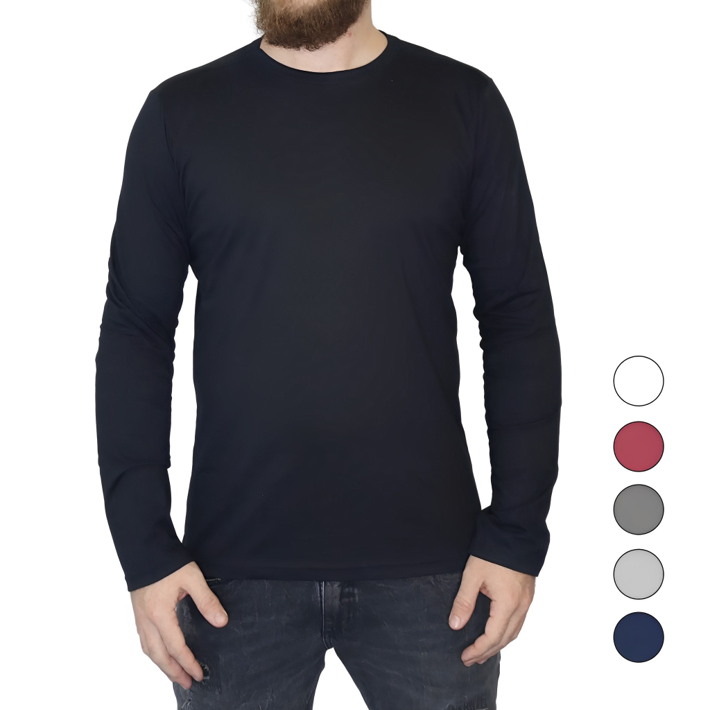 Camiseta Lisa Básica Manga Longa 100% Algodão Mlaha Premium Masculina Fio 30,1 Panteada Premium Gola Redonda