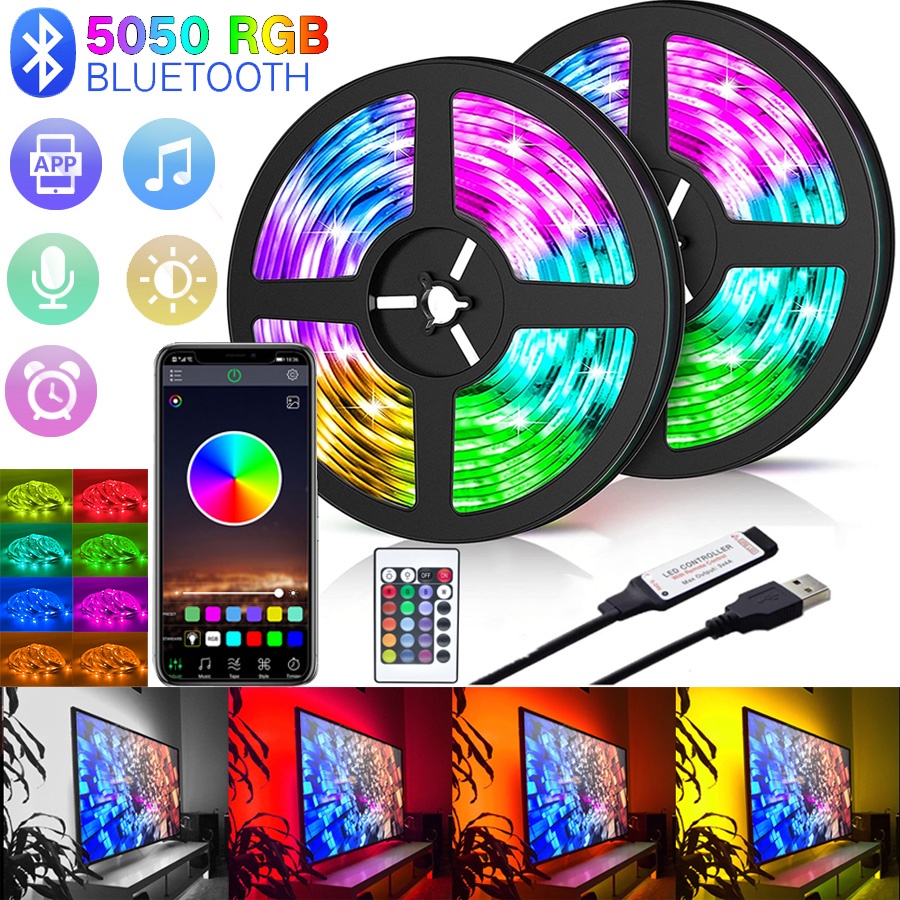 Fita LED 5050 1/5/10/15/20 Metros Conduzida USB Tiras De Luz RGB Mudança De Cor Por 24 Teclas Remoto E Bluetooth