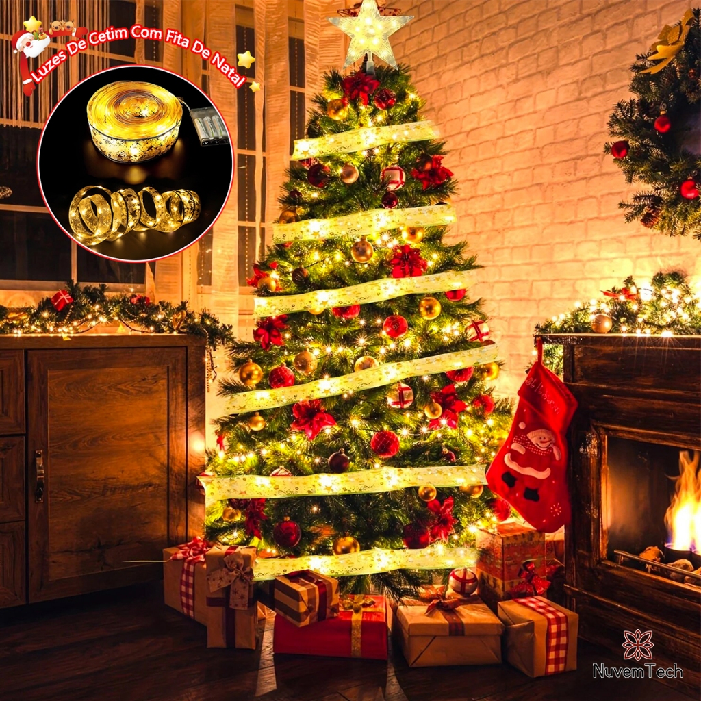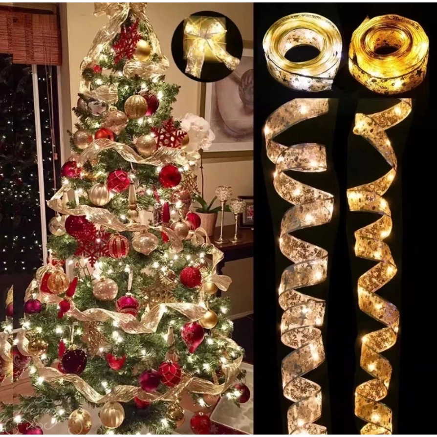 2M 5M 10M Luzes Fita De Natal Led Cetim Laços Fitas Dupla Árvore Decoração Enfeites Natalinos Arame De Cobre