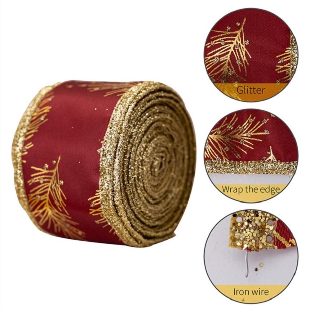 5M Fitas De Natal Para Presente De Artesanato Wrapping , Glitter Fita Com Borda Metálica , Brilhante Decoração De Embalagem De Caixa De Festa , Grinalda , Árvores Casa