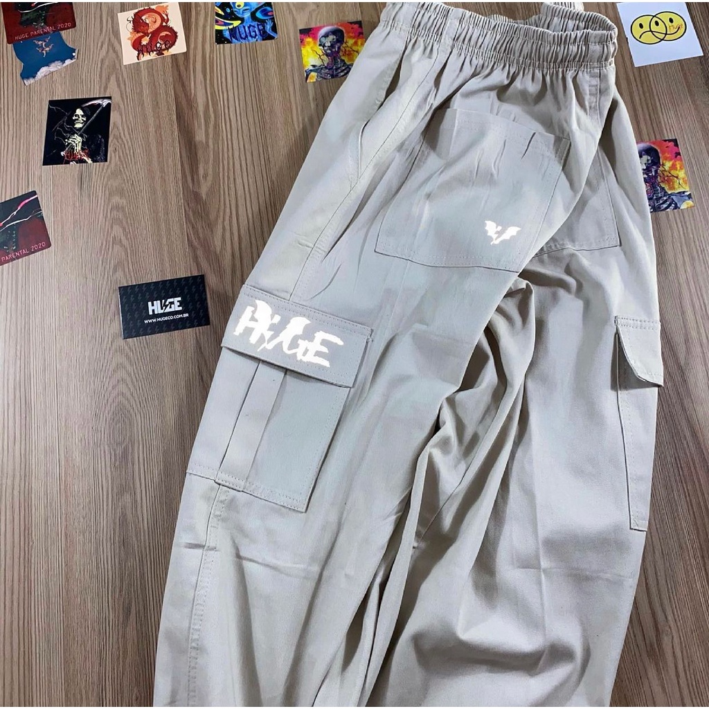 KIT 2 Calça Cargo Unissex Masculina Feminina Promoção Larga Preta Bege Cáqui Sarja Moda Skate