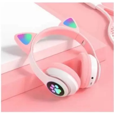 Fone De Ouvido Booglee Bluetooth Com Redução De Ruído Orelha De Gato Rosa