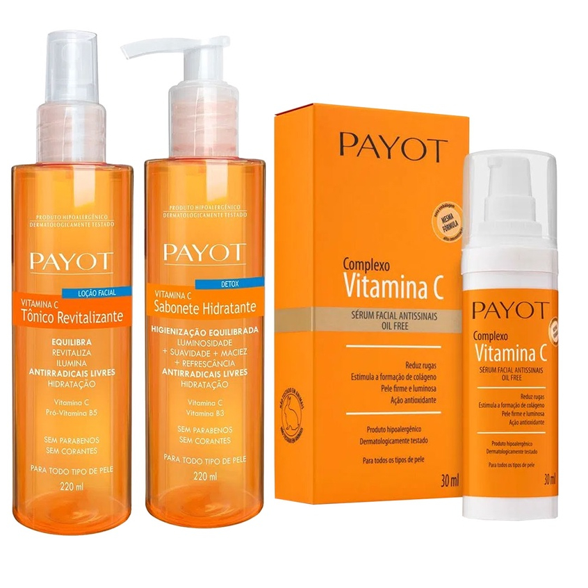 Kit Vitamina C Skin Care Sabonete + Tônico + Hidratante + Sérum + Complexo Payot
