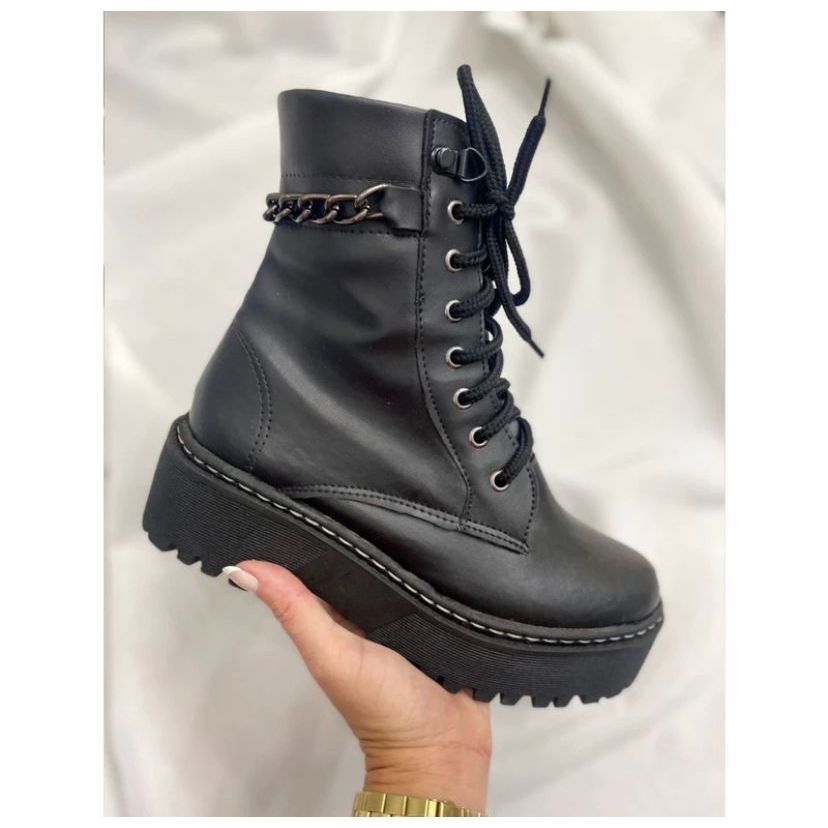 Bota com Corrente Feminina Coturno Feminino Militar Tratorado Blogueira Botas Tratoradas