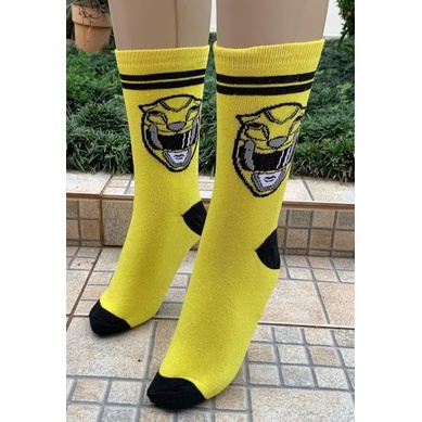 Meias divertidas de personagens cano longo unissex power rangers amarela