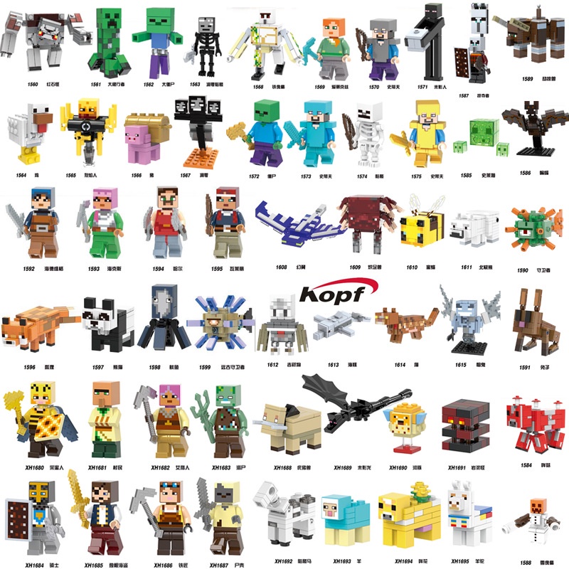 Minecraft Series Mini Figures Iron Golem Zombie Creeper Skeleton Wither Redstone Cube Minifiguras De Blocos De Construção Montados Brinquedos Infantis Série