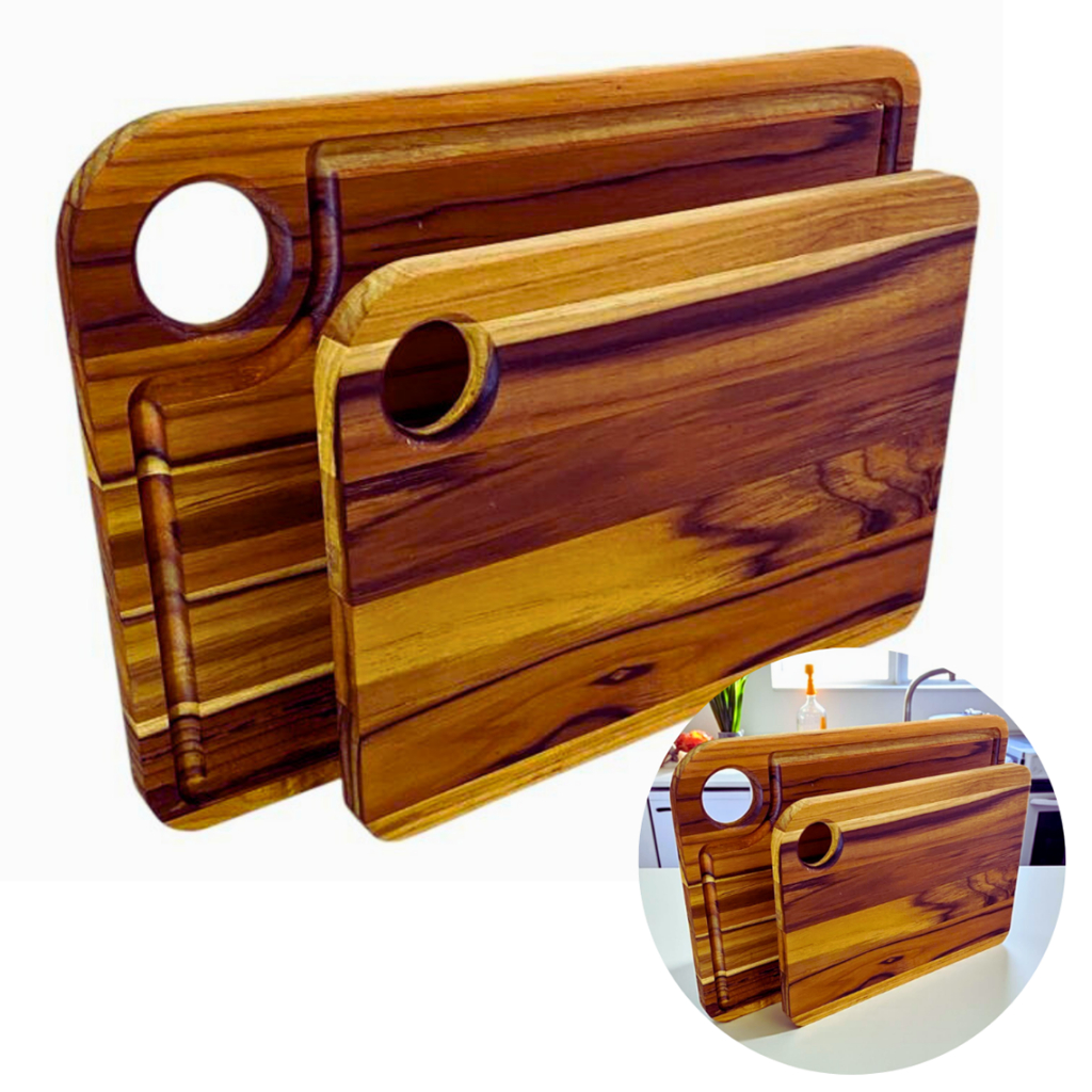 Tábua De Corte Madeira e Preparo Carne Churrasco Legumes com Canaleta + Tábua de Corte Lisa Monte seu Kit