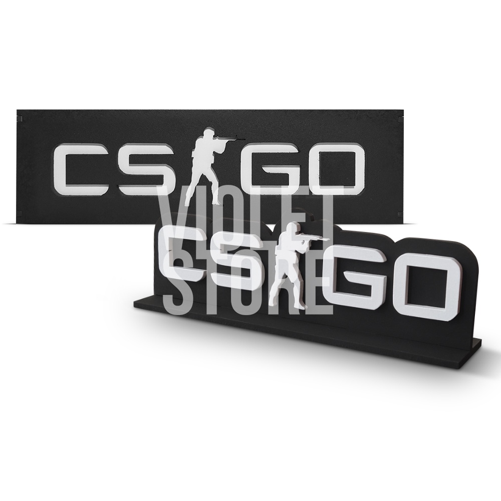 Kit Luminária Gamer Exclusiva Jogo Counter Strike CS GO De Led + Letreiro Placa Decorativa Para Setup Gamer