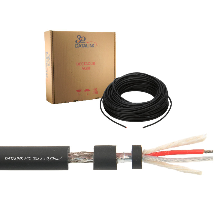Cabo Profissional Microfone Balanceado Estéreo Dmx Rolo 100 metros - Datalink - 2 x 0,30mm²