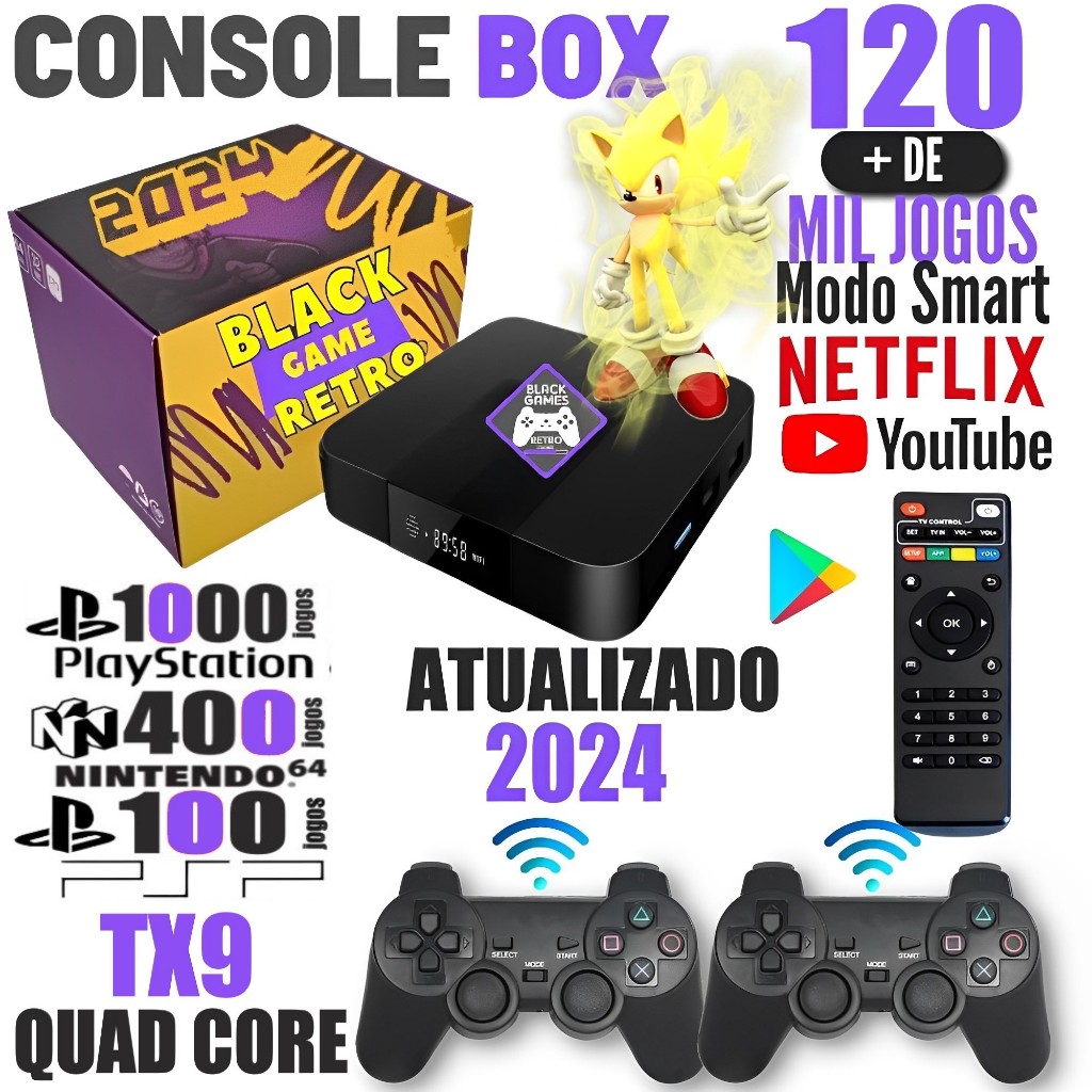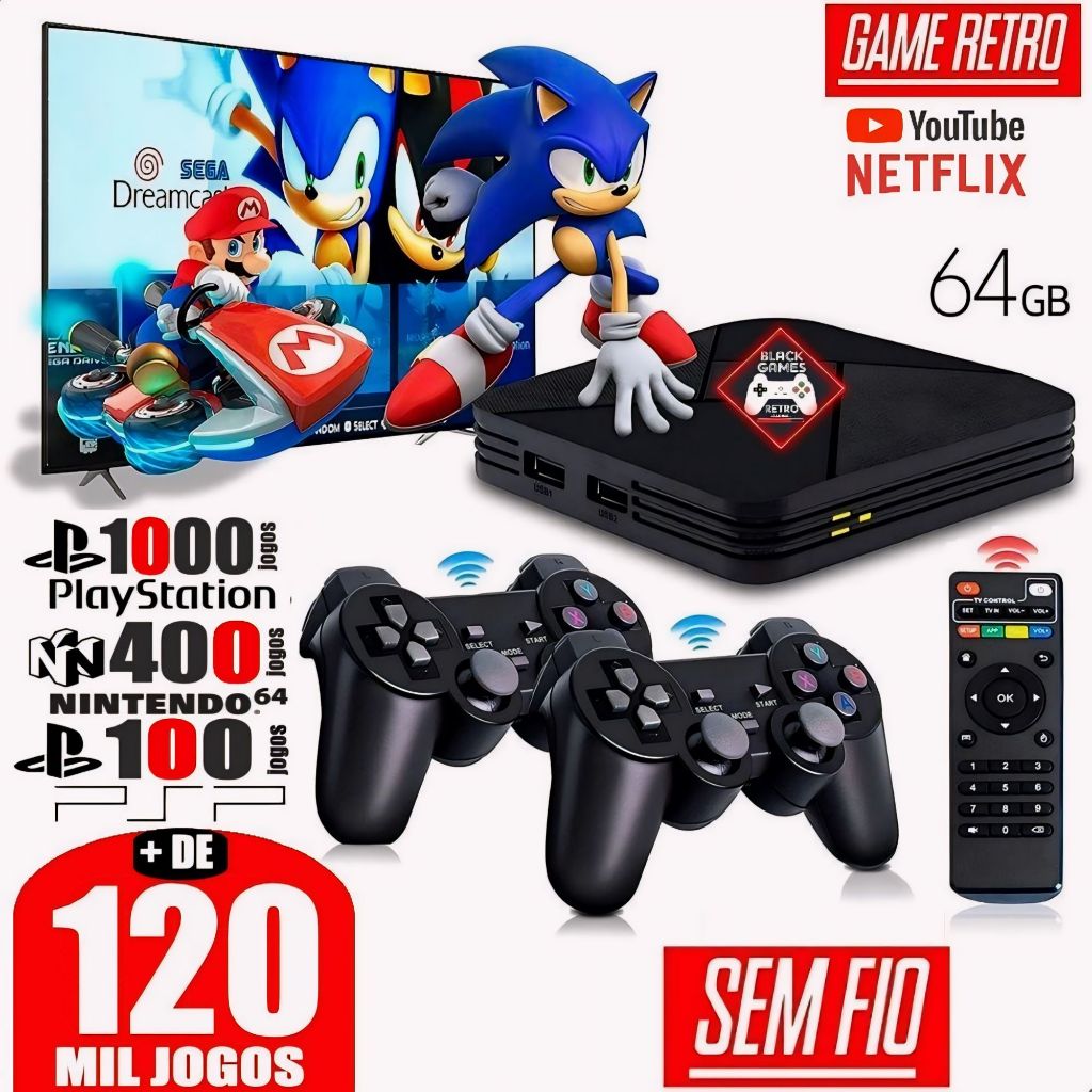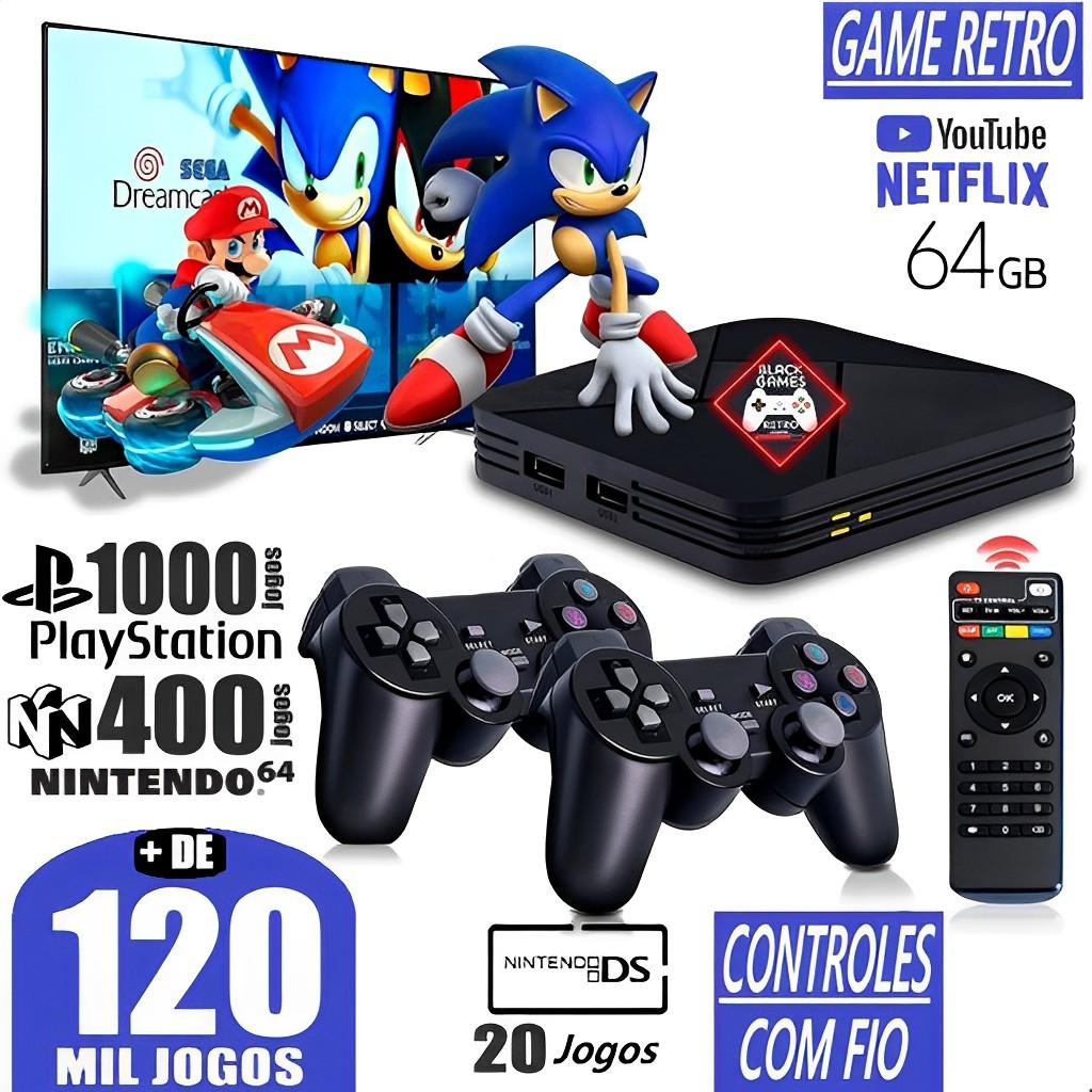 Vídeo Game Elite Retro 120.000 Mil Jogos Clássicos 64gb Com 2 Controles Sem Fio 2024