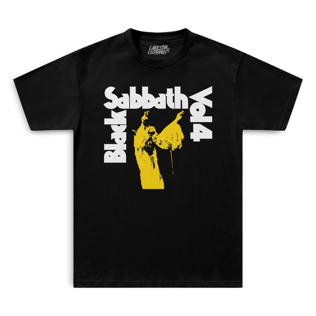 Camiseta banda de rock heavy metal Black Sabbath malha penteada 100% algodão - Preta