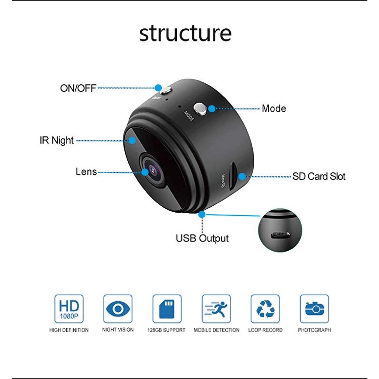 Mini Micro Camera Ip Espiã Wifi Full Hd Segurança Visão Noturna C/gravador De Voz