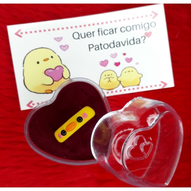 Aliança Pato Anel Com Cartão Fica Comigo Patodavida+ Caixinha Anel Namoro Casamento