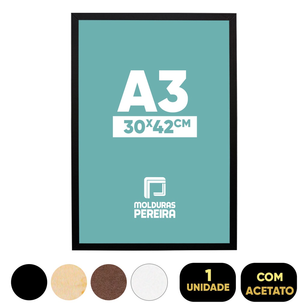 Quadro Moldura 30x42 cm A3 COM ACETATO - 42X30 Moldura Lisa - Poster